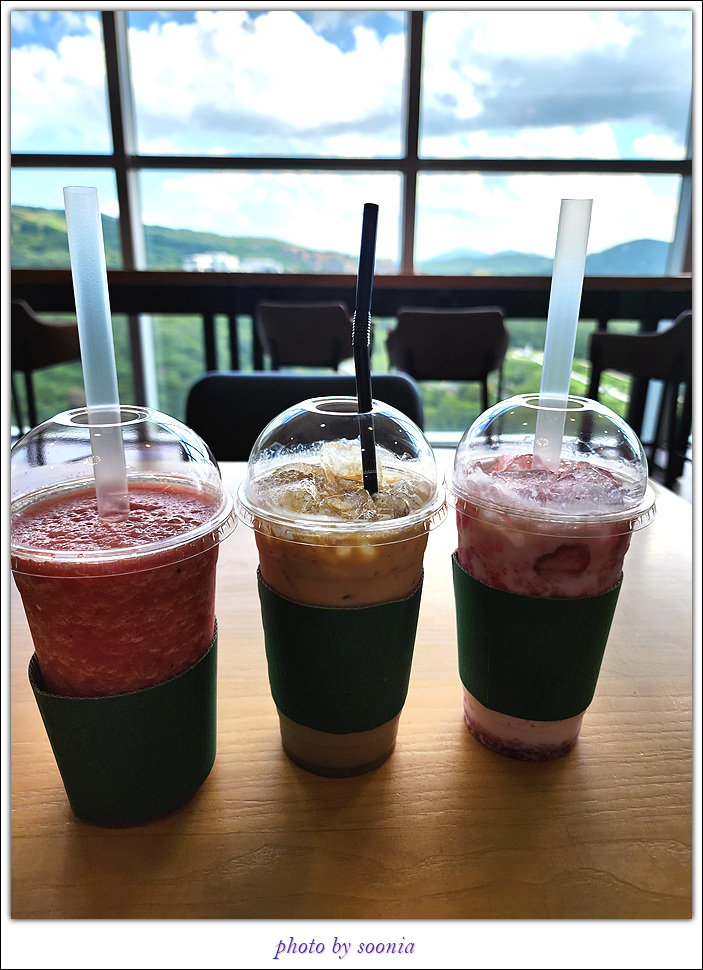 시원한 커피와 스무디를 마시면서